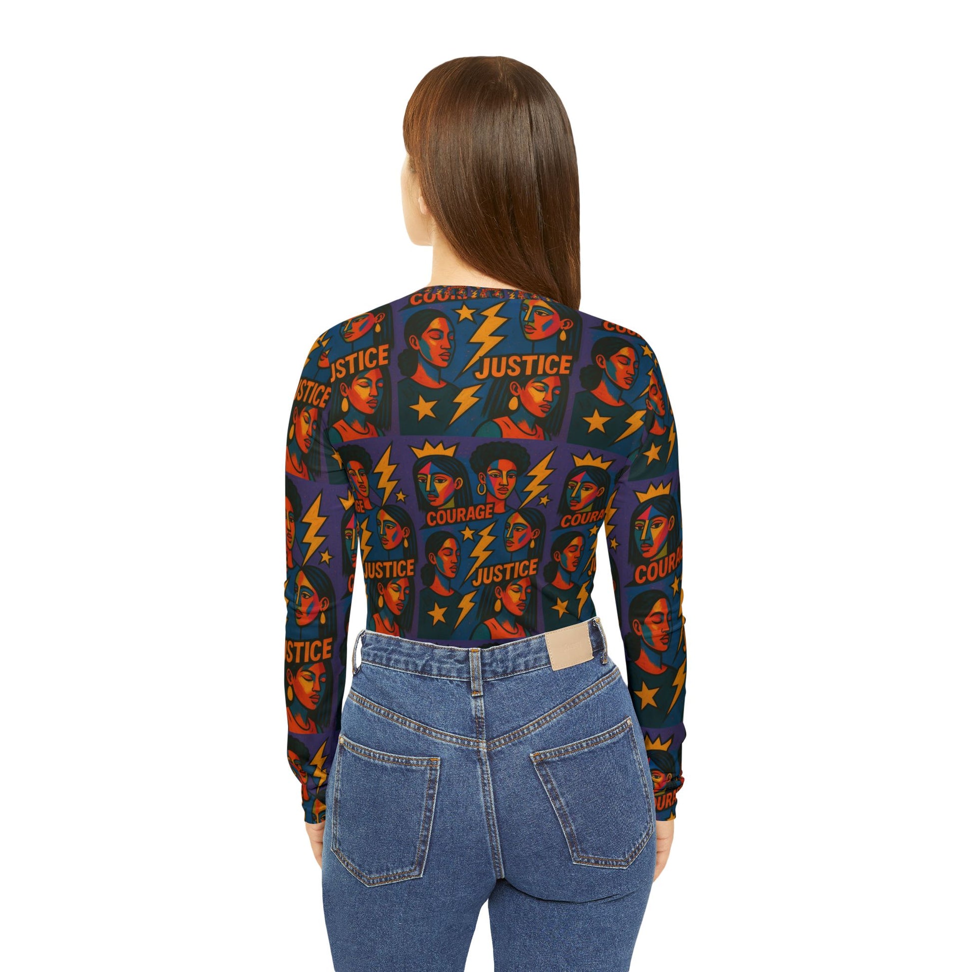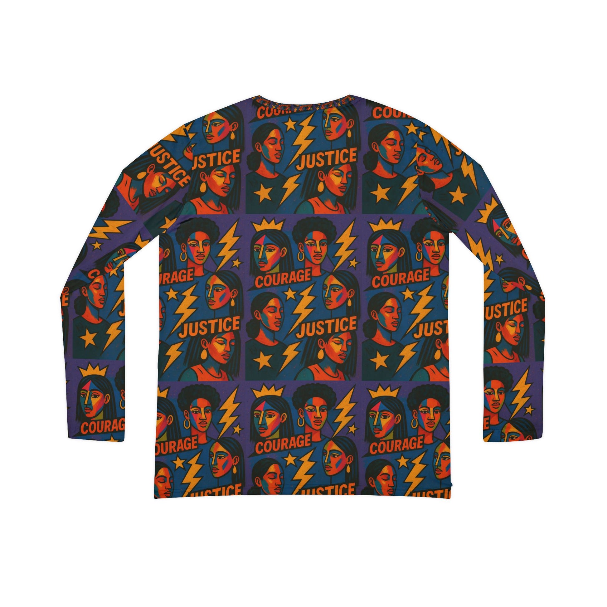 Courage ,Justice Long Sleeve V-neck Shirt, Rainbow Vibe Top, Gift for Her, Boho Style Apparel, Positive Energy Wear, Colorful Everyday Fashion
