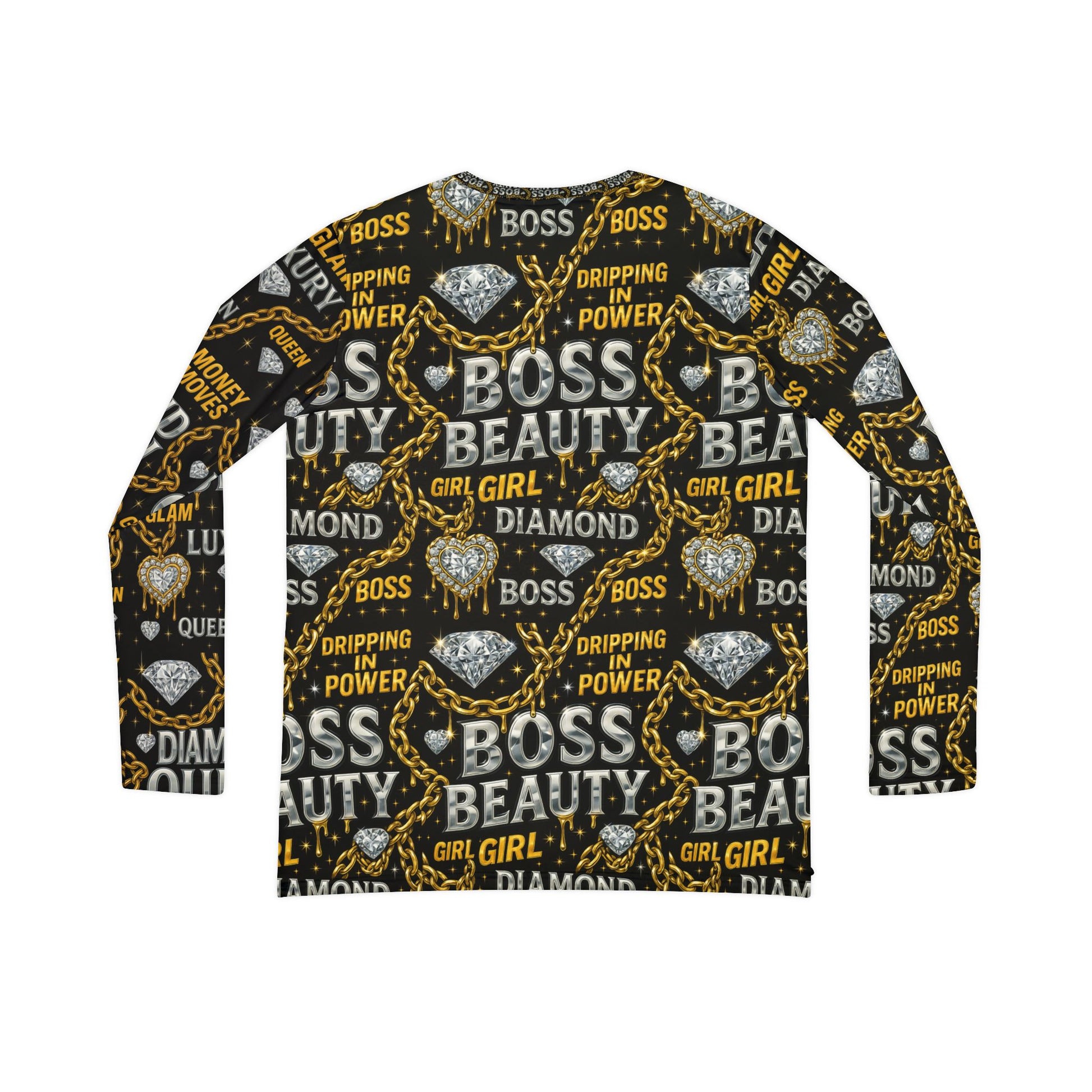 Diamond Queen Boss beauty Women's Long Sleeve Graphic V-Neck Shirt, Fun Comic Pop Art Top, Casual Wear, Gift for Her, Birthday Tee, Statement Shirt