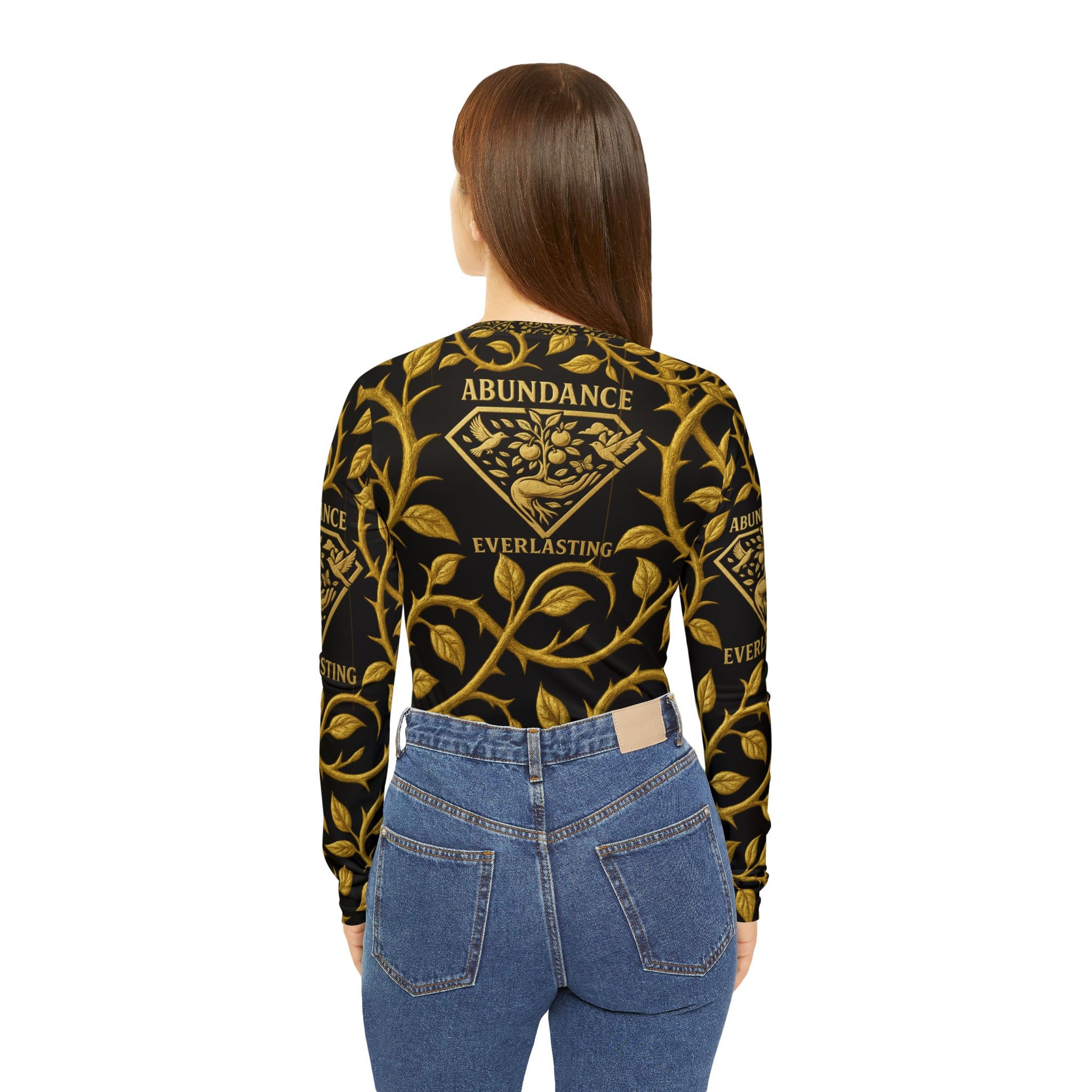 Abundance Everlasting black and gold Women's Long Sleeve Graphic V-Neck Shirt, Fun Comic Pop Art Top, Casual Wear, Gift for Her, Birthday Tee, Statement Shirt