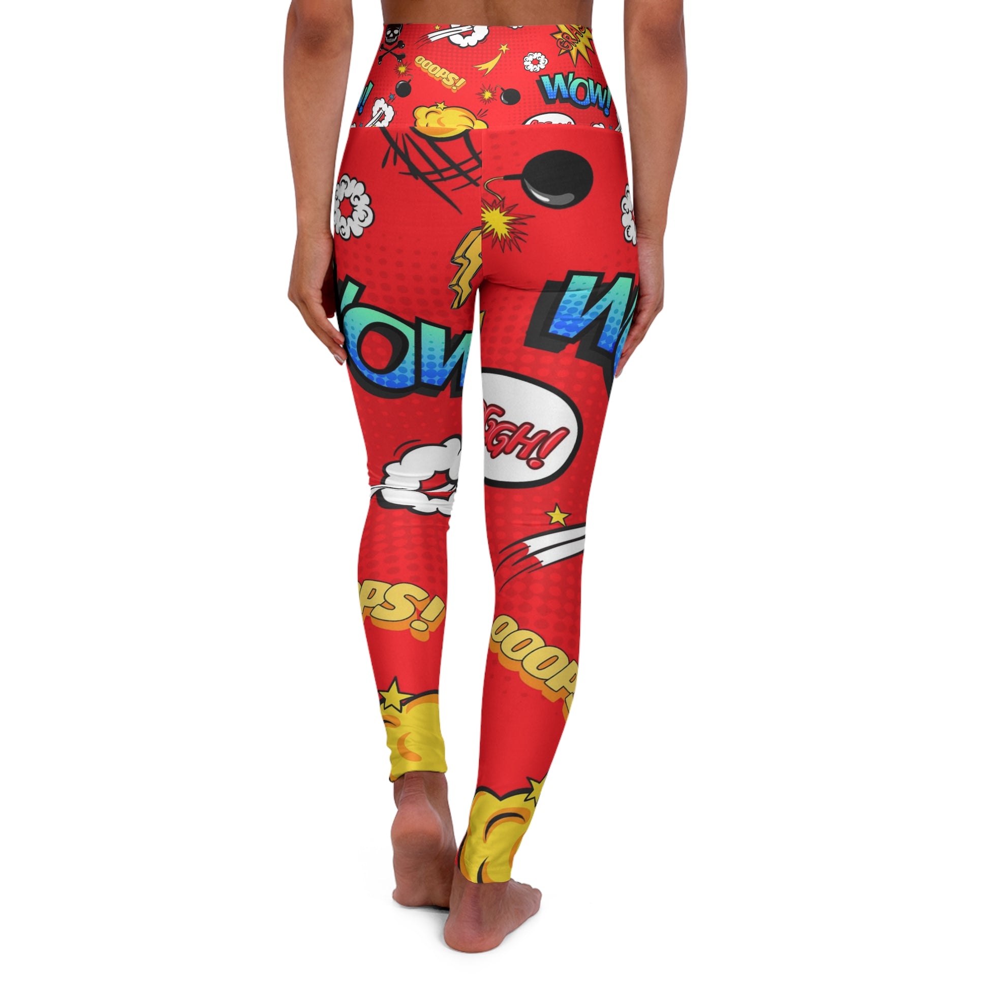 Wow, pow, red High Waisted Yoga Leggings (AOP)